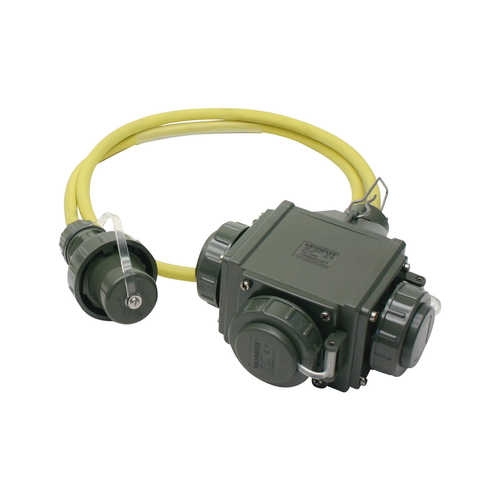 Kompaktan uređaj u obliku kocke sa visećim nosačem. Žuti visoko fleksibilni gumeni kabel H07RN-F3G2.5 prema DIN VDE 0282, dostupan u tri dužine. Razdjelnik je potpuno vodonepropusan sukladno IP68 stupnju zaštite.